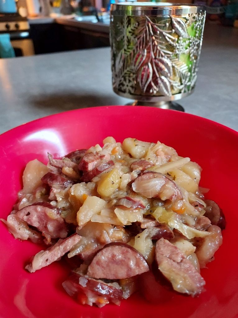 ONE POT DINNER with SAUSAGE, CABBAGE, AND POTATOES