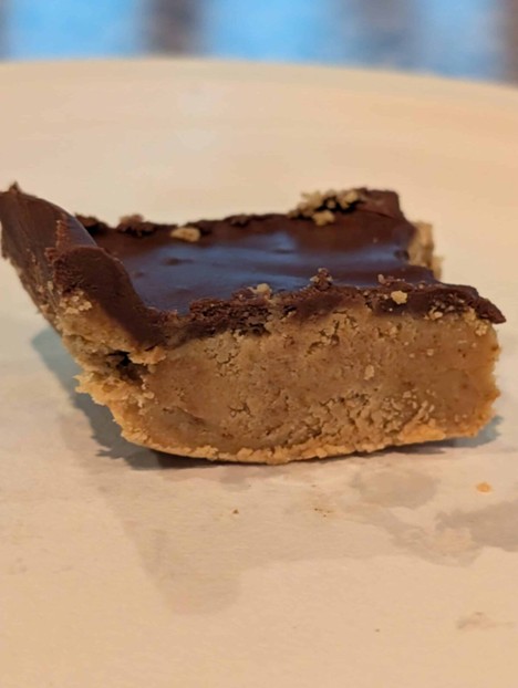 • In a medium bowl, add the chocolate chips, butter, and peanut butter. Microwave until smooth and creamy.