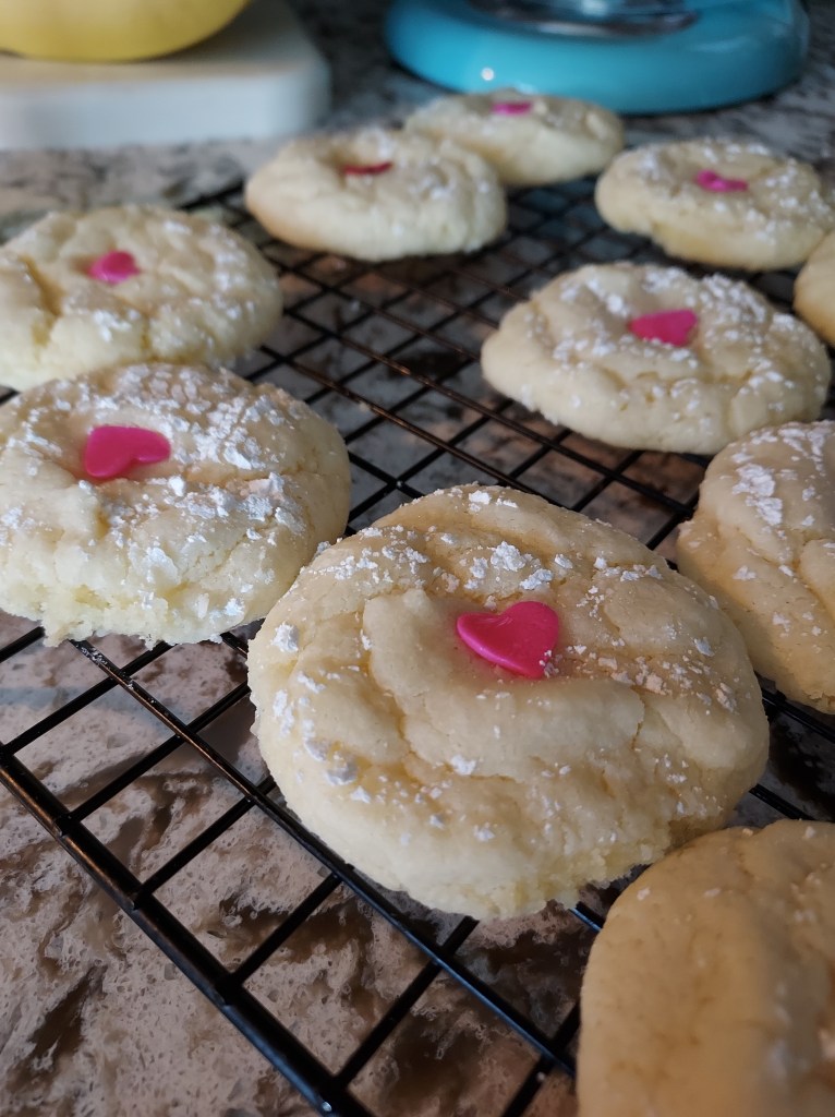 So I had this crazy thought, what if we took the Grinch Cookie recipe and left out the green food coloring? This is how those turned out. Perfect for Valentine’s Day.